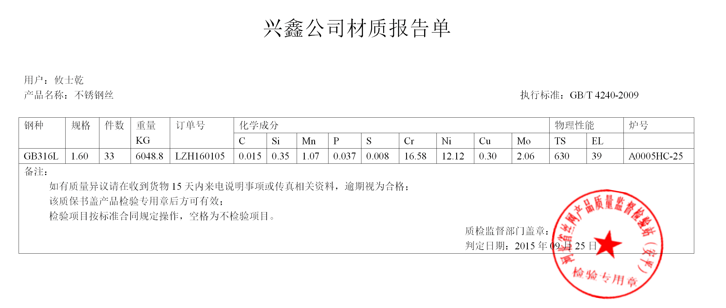 兴鑫公司是一家专业生产不锈钢网的产品,每批货都可以出具不锈钢丝的检验报告。